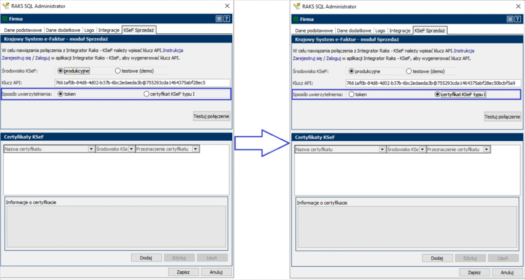 Jak zmienić Token na Certyfikat w RAKS Sprzedaż?