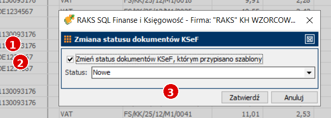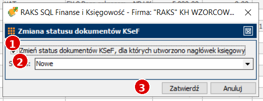 - 1 – zaznacz opcję zmiany statusu po rozksięgowaniu.