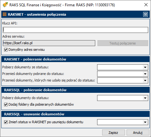 Integrator KSeF – ustawienia połączenia