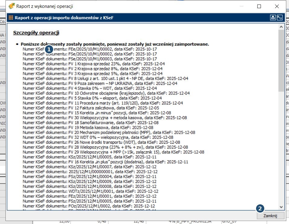 Zamyka okno Dokumenty KSeF.