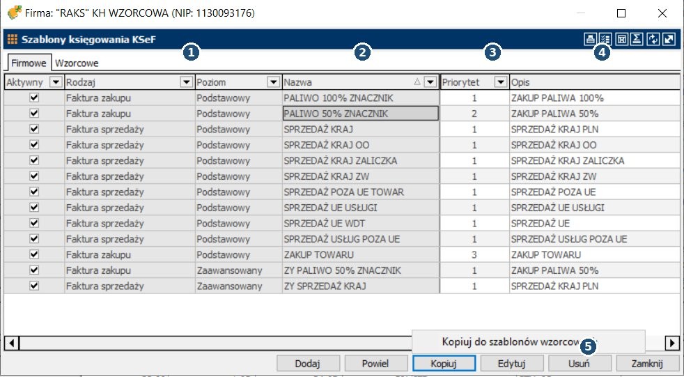UWAGA: Po każdej większej zmianie w szablonach (reguły/priorytety) przetestuj działanie na 1–2 dokumentach przed księgowaniem zbiorczym.