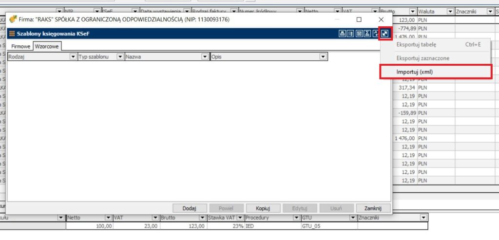 - zarządzania szablonami rozksięgowań oraz ustawieniami KSeF.